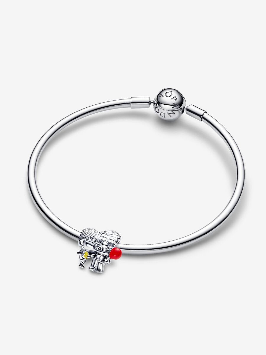Sterling silver charm featuring Carl and Ellie from Disney Pixar’s Up, holding a bright red balloon and a yellow ice cream, capturing their heartwarming love story.