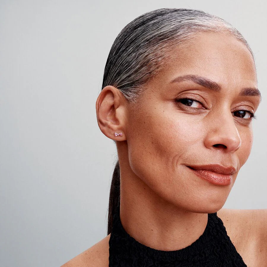 Cute and feminine, these sterling silver stud earrings feature sparkling pink heart-shaped stones arranged in a delicate bow design. A playful yet elegant accessory, perfect for adding a touch of charm to any outfit.
